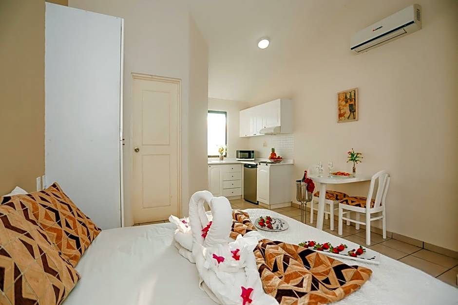 Meals can be prepared in the well-fitted kitchenette, which comes with a stovetop, a refrigerator and a microwave. This air-conditioned quadruple room includes a flat-screen TV with cable channels, a private bathroom as well as a terrace with pool views. The unit offers 2 beds.